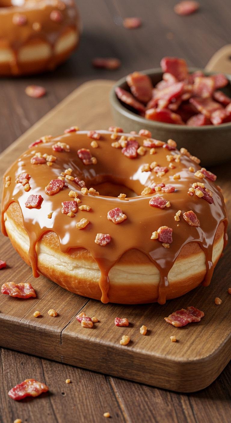 - Drizzle maple glaze and sprinkle bacon on top.