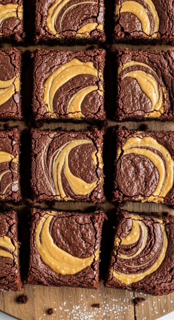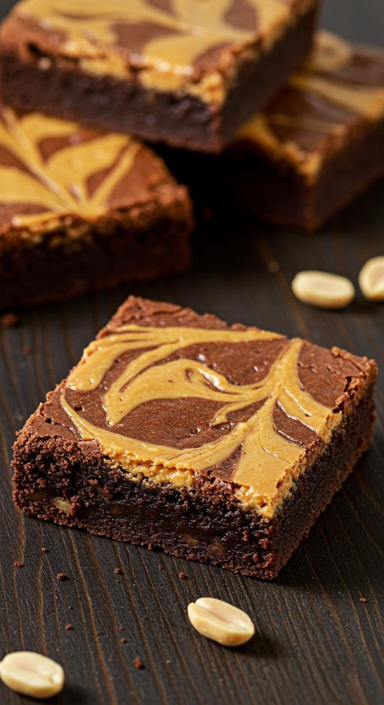 - Pour half the batter into the pan, swirl in peanut butter, and top with the rest of the batter. Bake for 30 minutes.