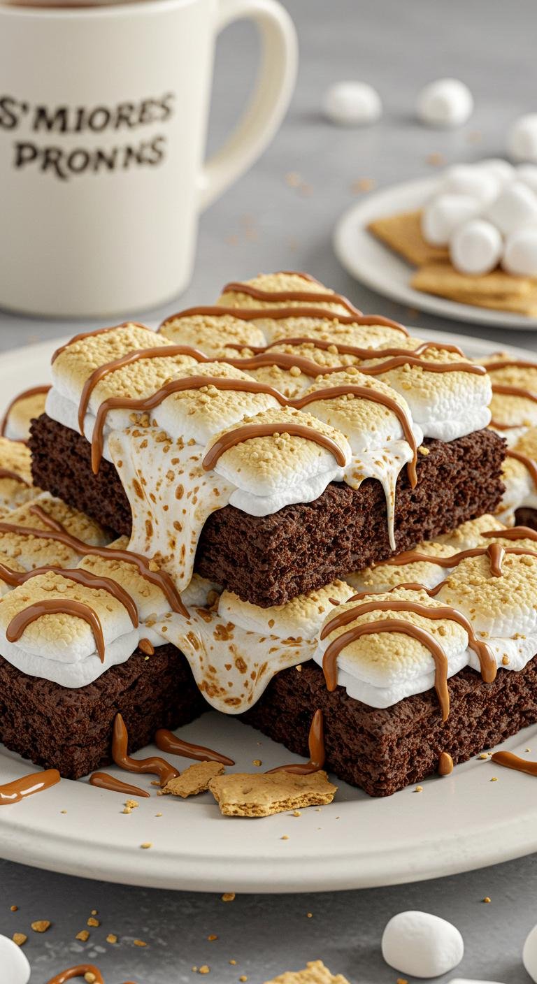 - Pour half the batter into the pan, sprinkle graham cracker crumbs and marshmallows, and top with remaining batter. Bake for 30 minutes.