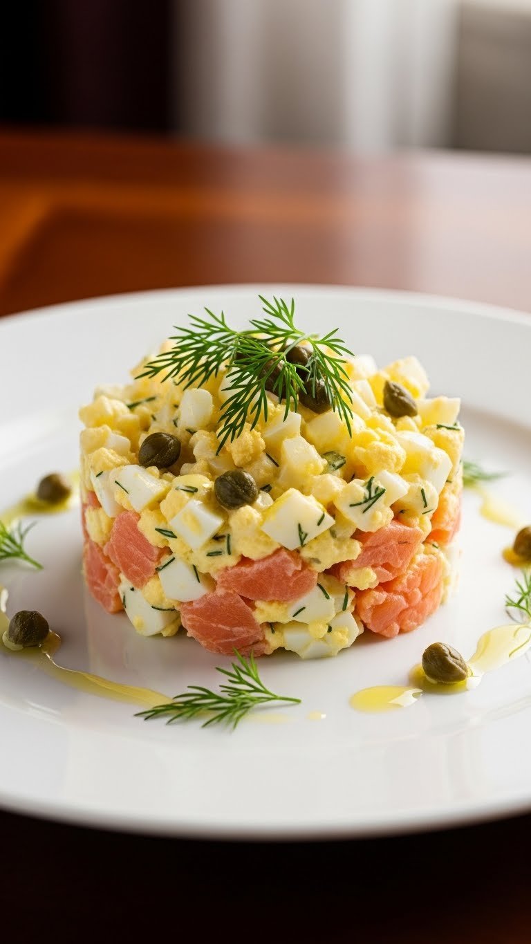 - In a bowl, mix chopped eggs, smoked salmon, cream cheese, and lemon juice until well combined.