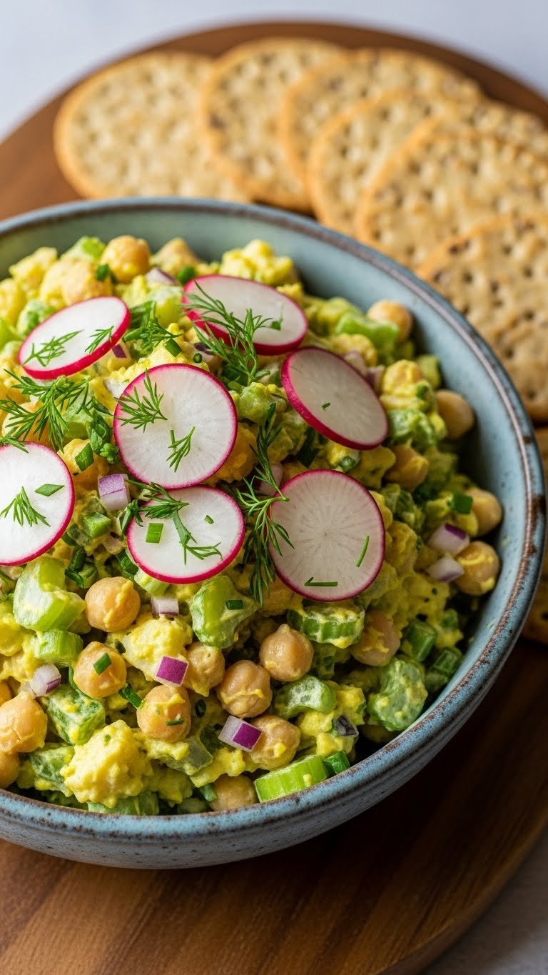 - In a bowl, mash chickpeas and mix with vegan mayo and Dijon.
