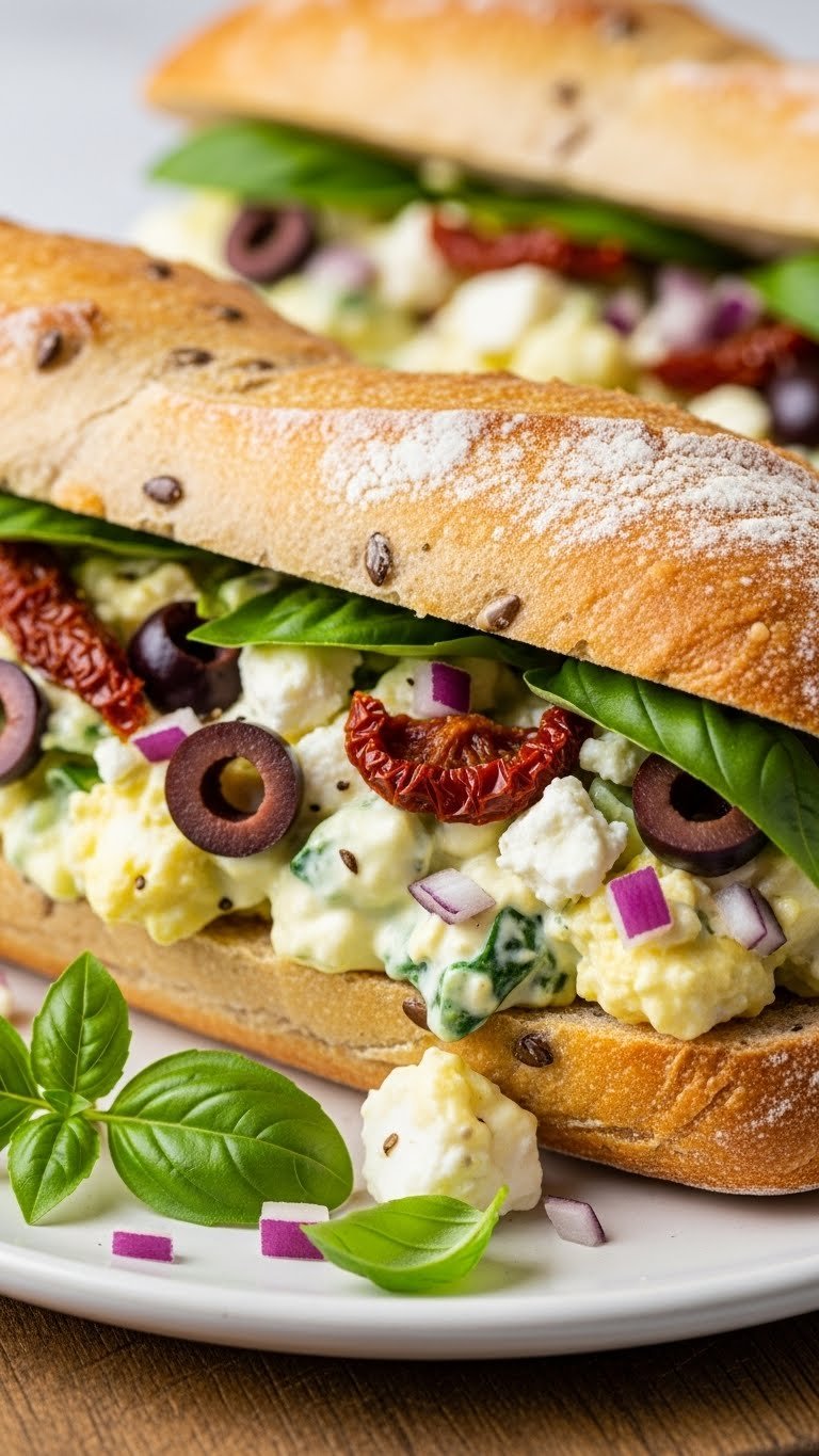 - Mix eggs, Greek yogurt, olives, and sun-dried tomatoes in a bowl.