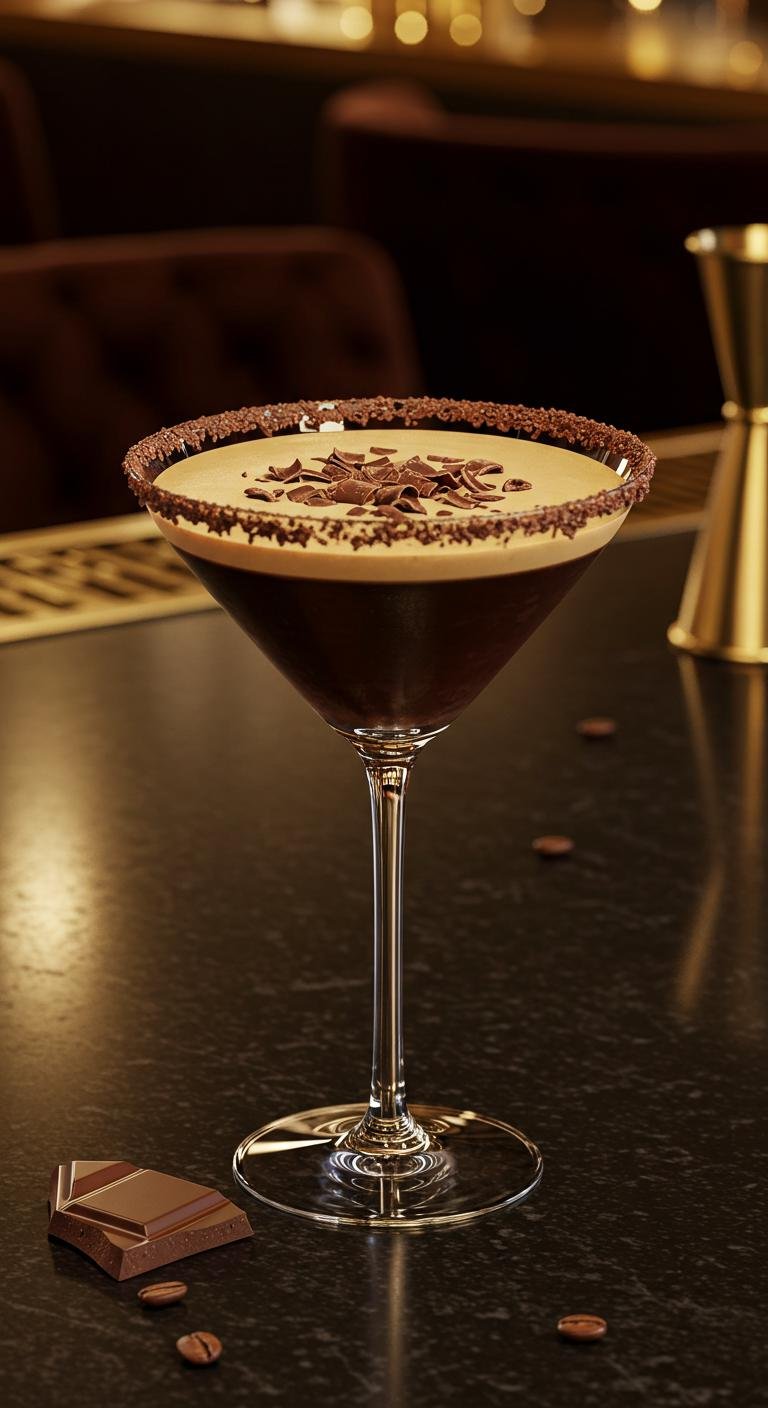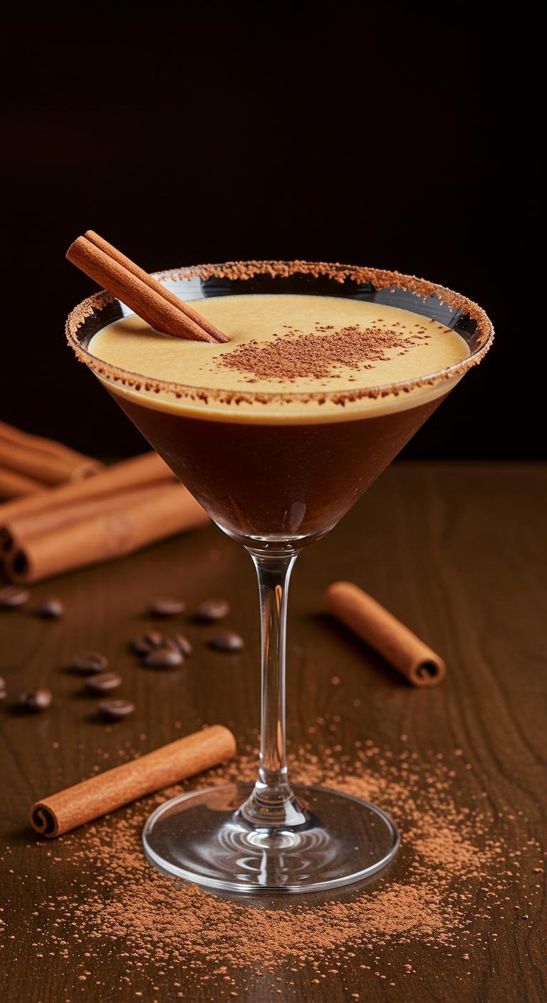 - Shake vodka, chocolate liqueur, espresso, and cinnamon with ice.