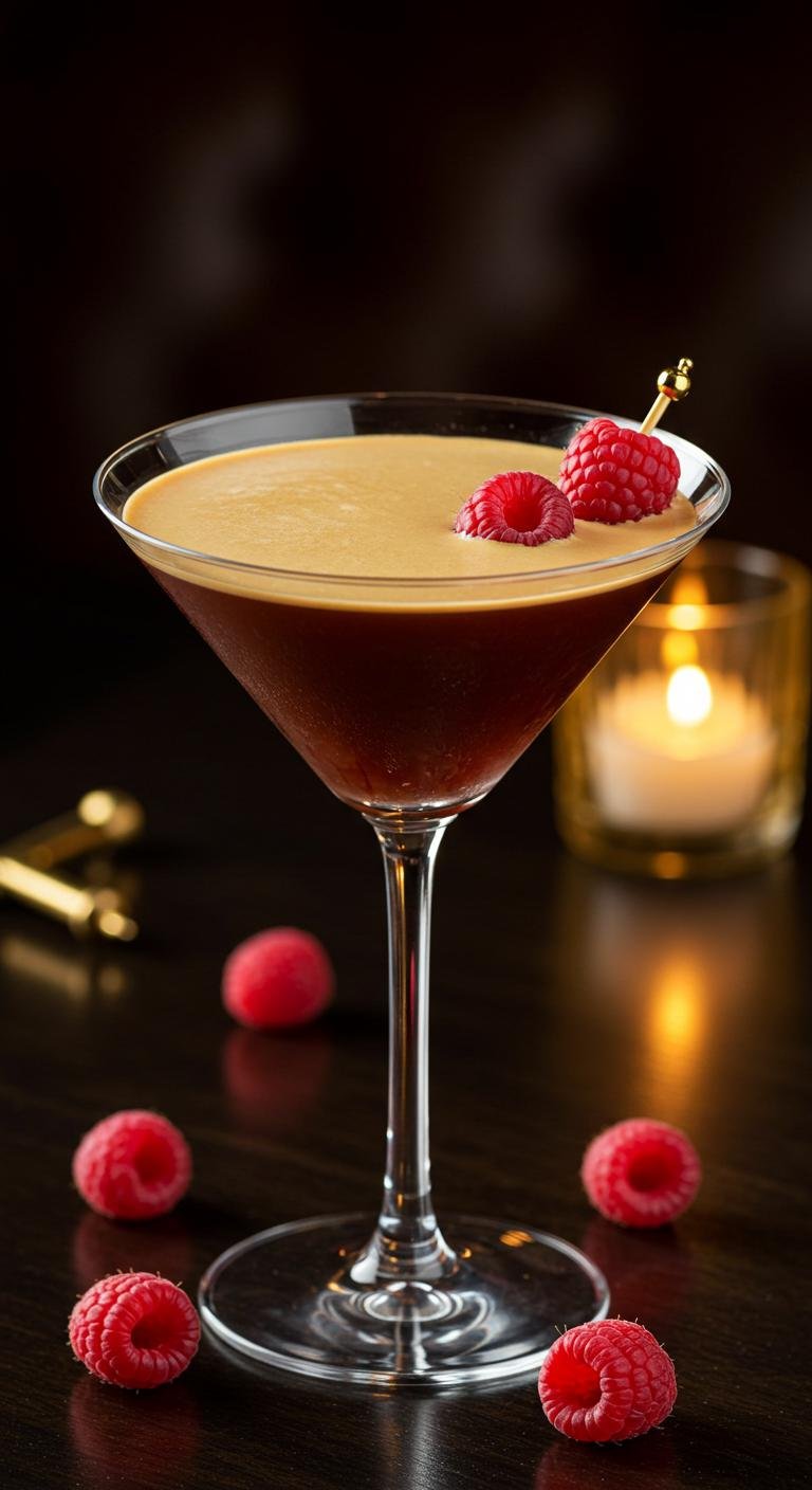 - Shake vodka, raspberry liqueur, and espresso over ice.