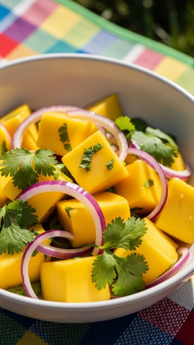 - In a bowl, combine the diced mango, red onion, and jalapeño.