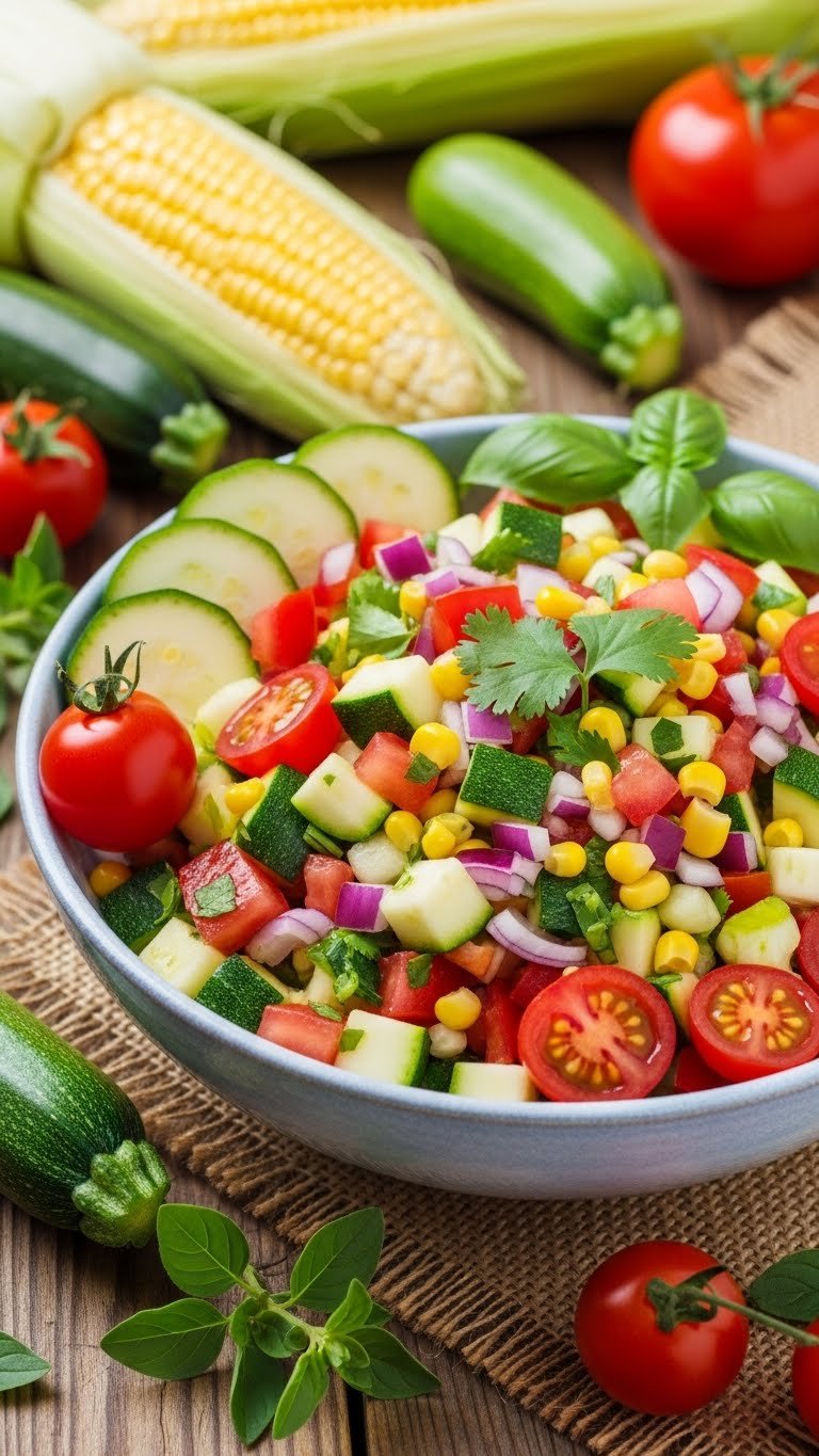 - Mix diced zucchini, tomatoes, onion, and cilantro in a bowl.
