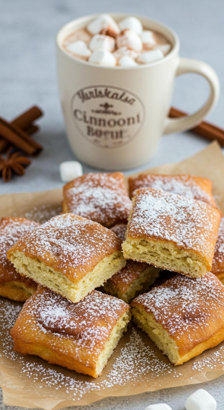 - Roll out and cut into squares. Fry until golden, then dust with cinnamon and sugar.