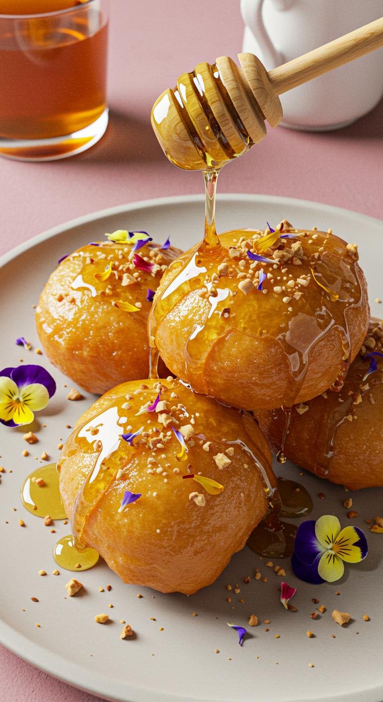 - Fry until golden and then drizzle with honey and sprinkle with nuts.