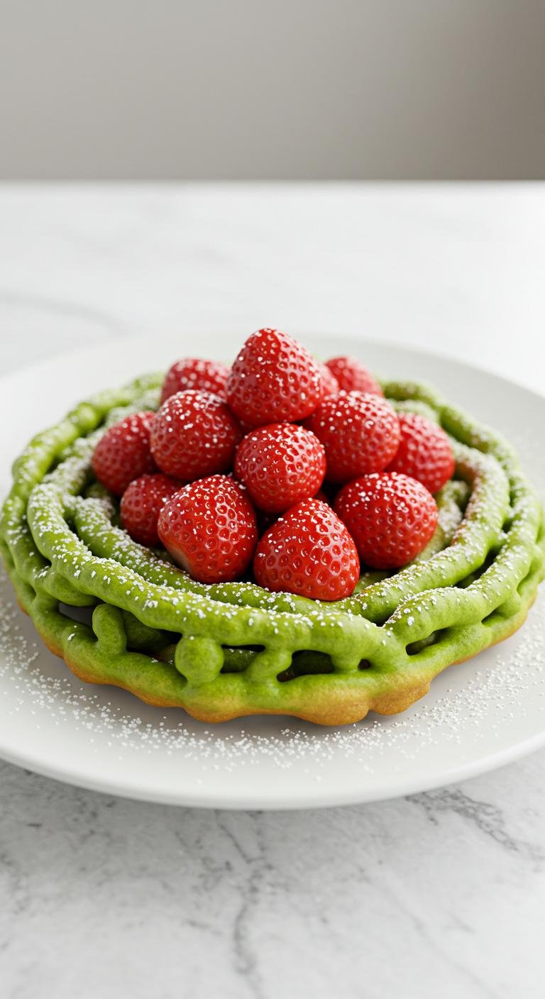 Matcha Strawberry Funnel Cake
