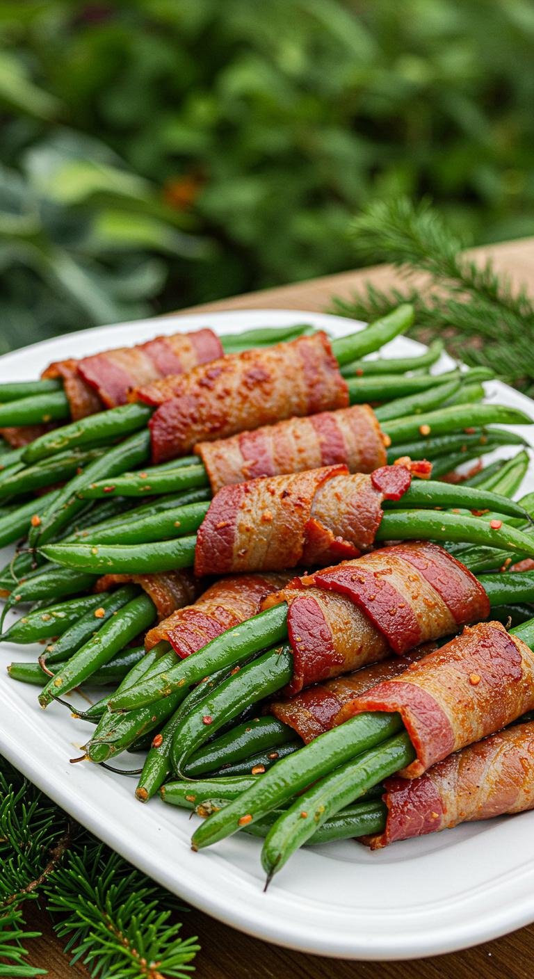 - Preheat the oven to 400°F (200°C). Wrap 5-6 green beans with a slice of bacon.