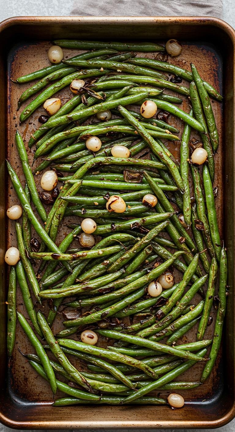- Preheat the oven to 425°F (220°C). Toss green beans with olive oil, salt, and pepper.