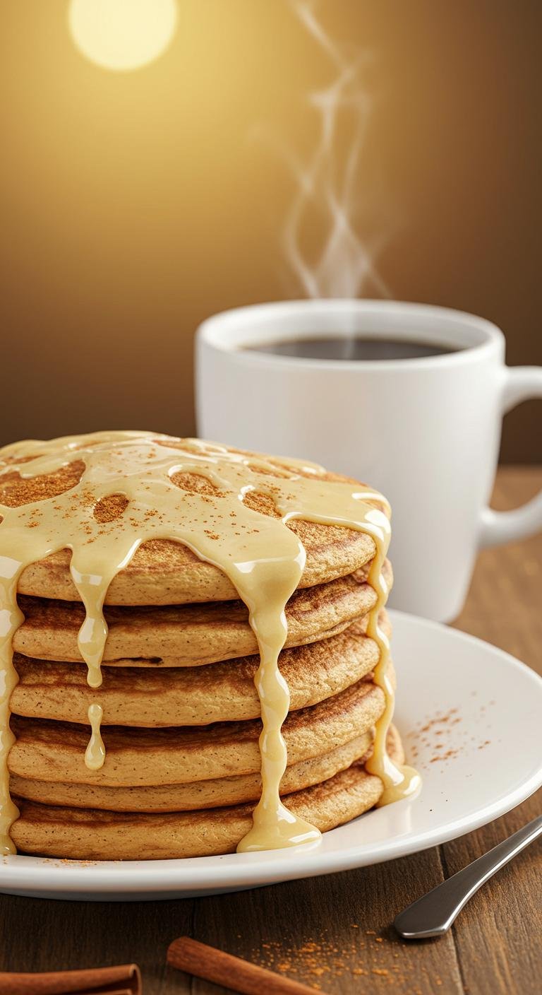 Indulge in the sweet flavors of a cinnamon roll in pancake form.