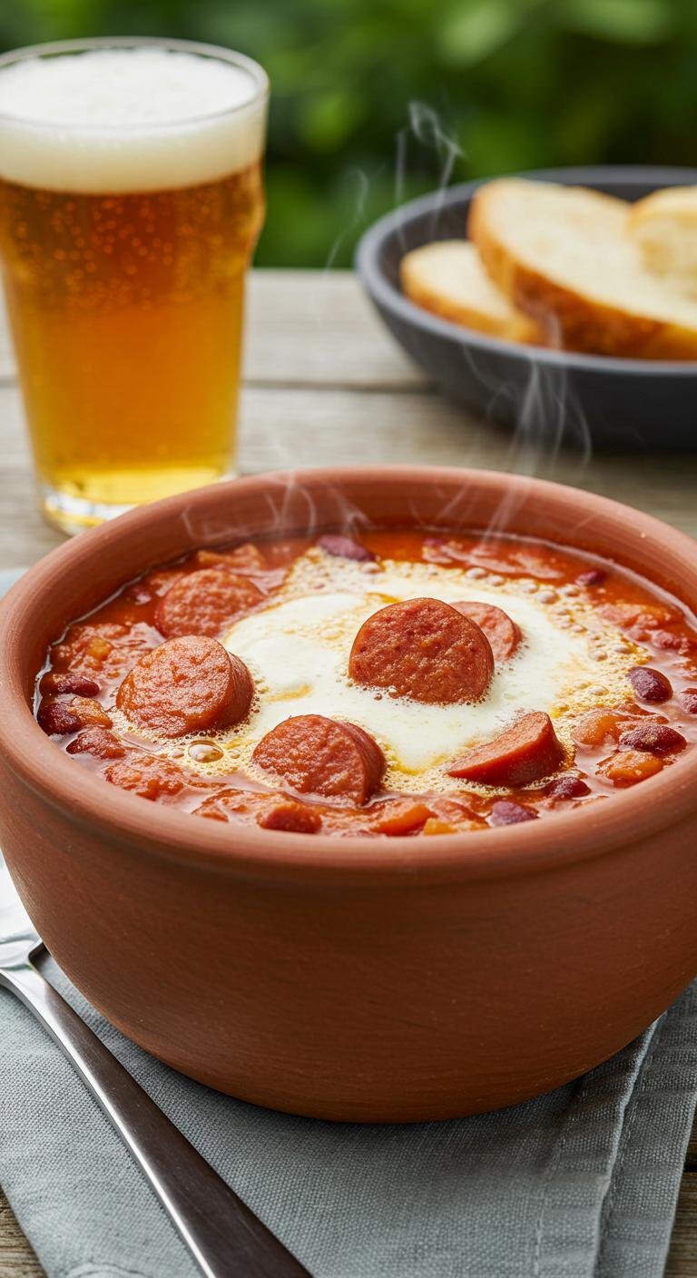 - Add beer, tomatoes, beans, and cumin. Simmer for 30 minutes.