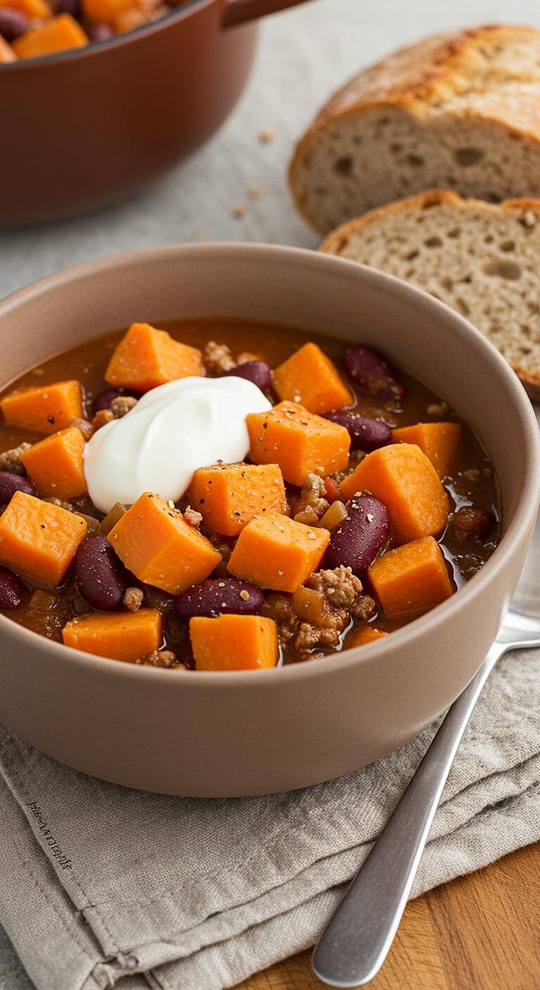 - Stir in tomatoes, beans, and chili powder. Simmer until sweet potatoes are tender, about 20 minutes.