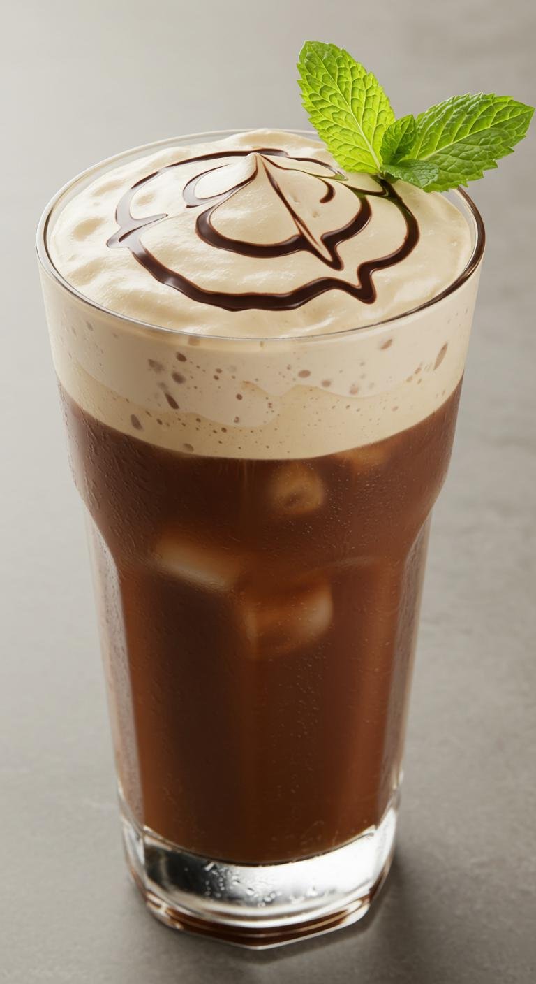 - Combine chilled coffee and chocolate syrup in a glass filled with ice.