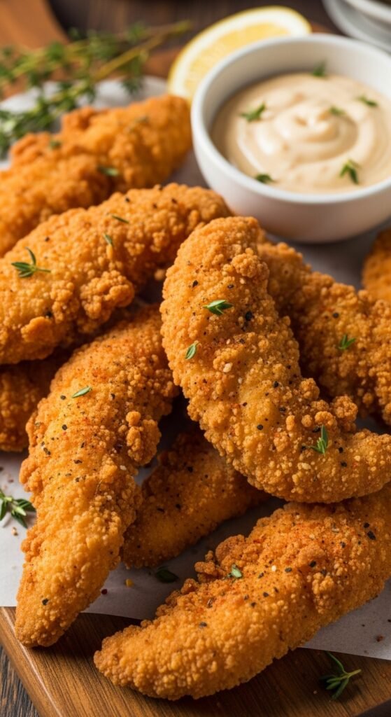 - Soak chicken strips in buttermilk for at least 30 minutes.