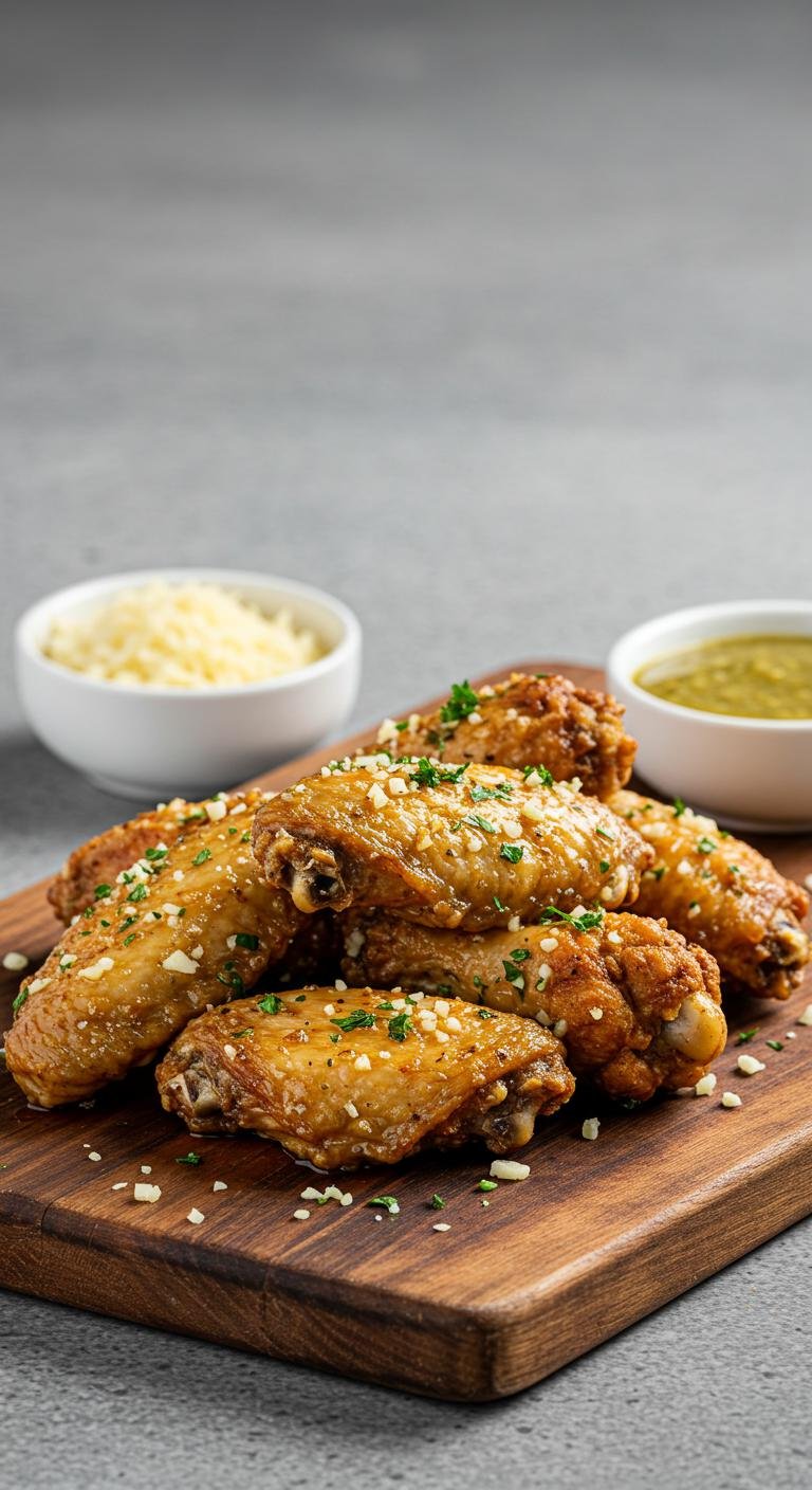 - Combine flour, Parmesan, garlic powder, salt, and pepper. Dredge wings in the mixture.