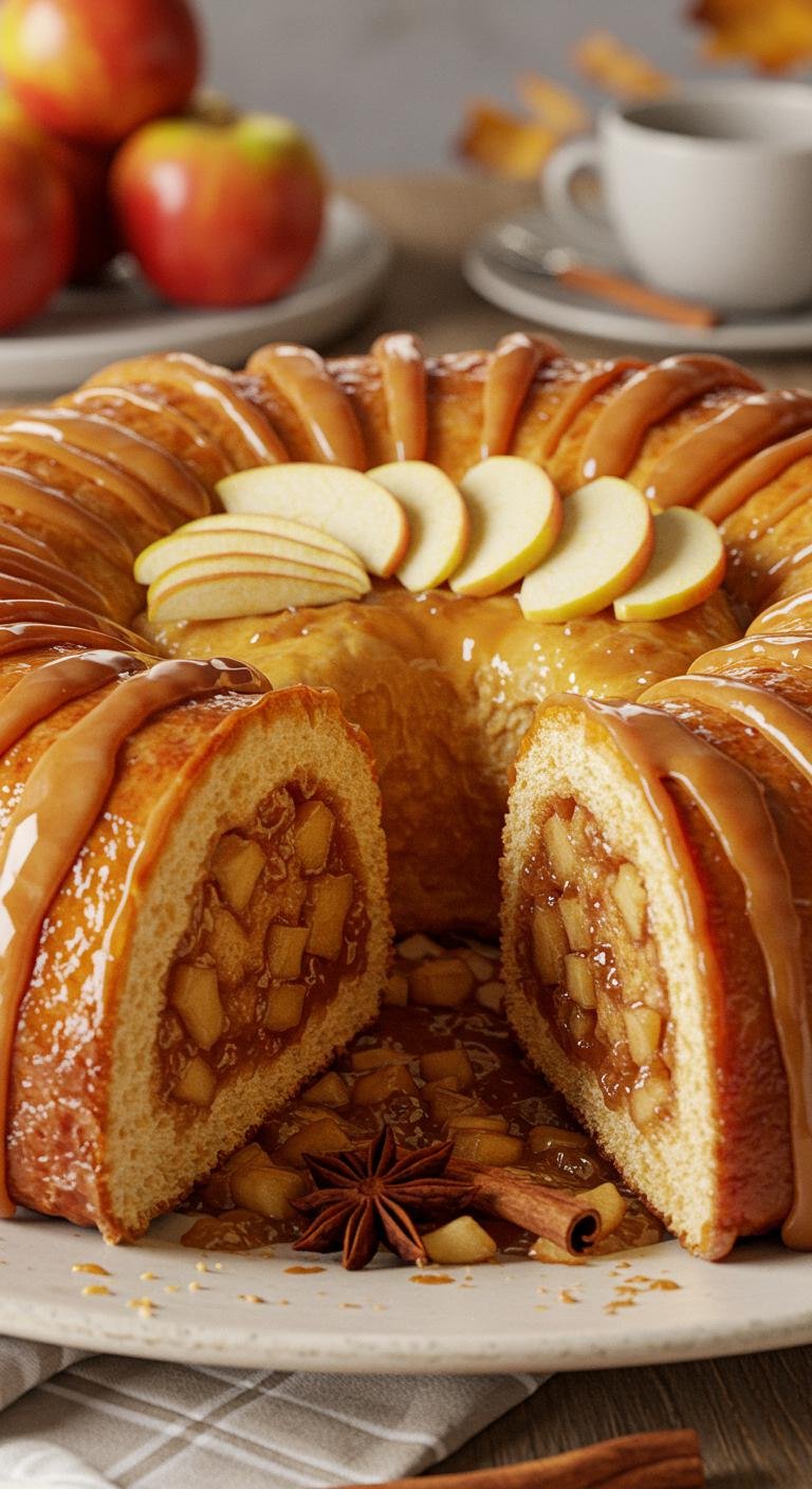 - Stir in flour, knead, and rise for 1 hour. Shape and fill with apple filling.
