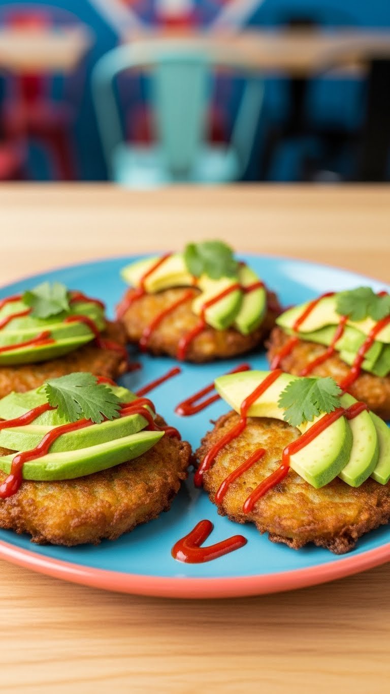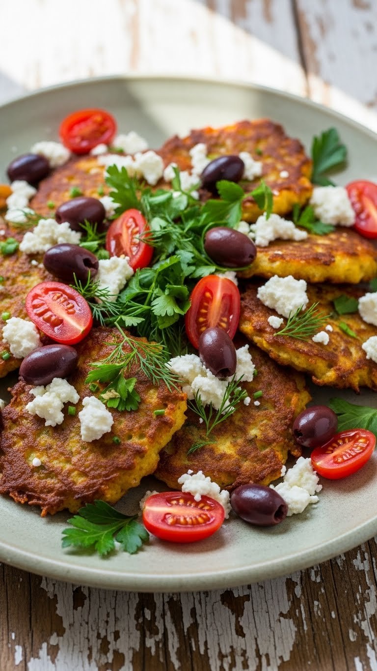 - Top each latke with tomatoes, olives, and a sprinkle of feta.