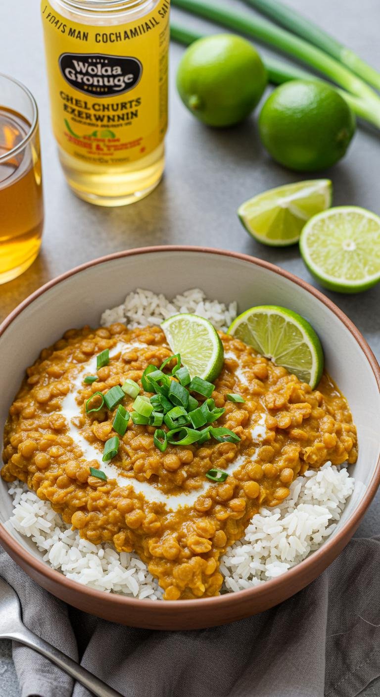 - Sauté onion, then add lentils, coconut milk, and curry powder.