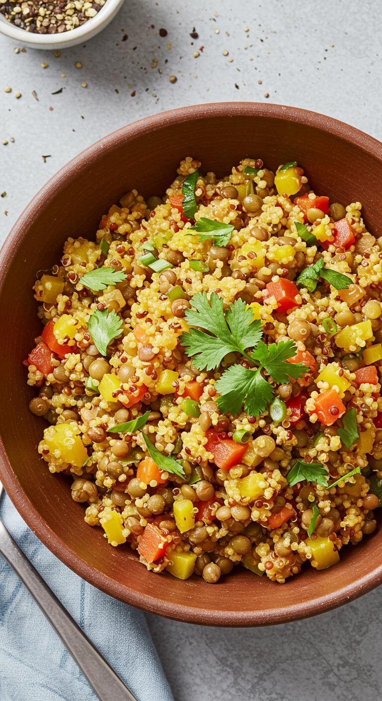 - Sauté onion, stir in lentils, and cook until tender; combine with quinoa.