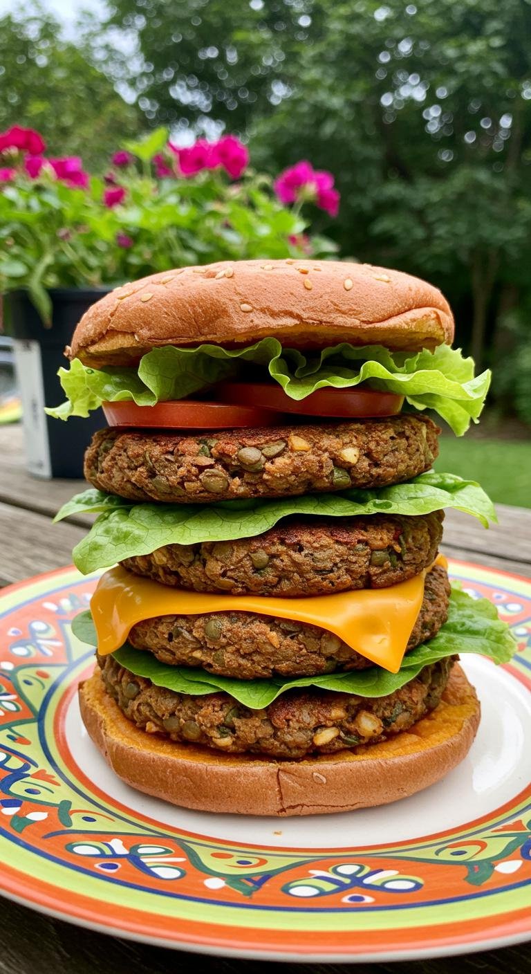 - Mix lentils, breadcrumbs, egg, and seasonings, forming burger patties.