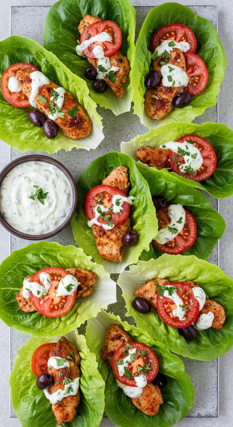 - In a bowl, mix shredded chicken, tomatoes, olives, and tzatziki sauce.
