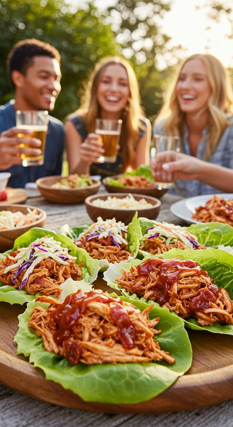 - Place coleslaw in lettuce leaves, top with BBQ chicken, and roll up!
