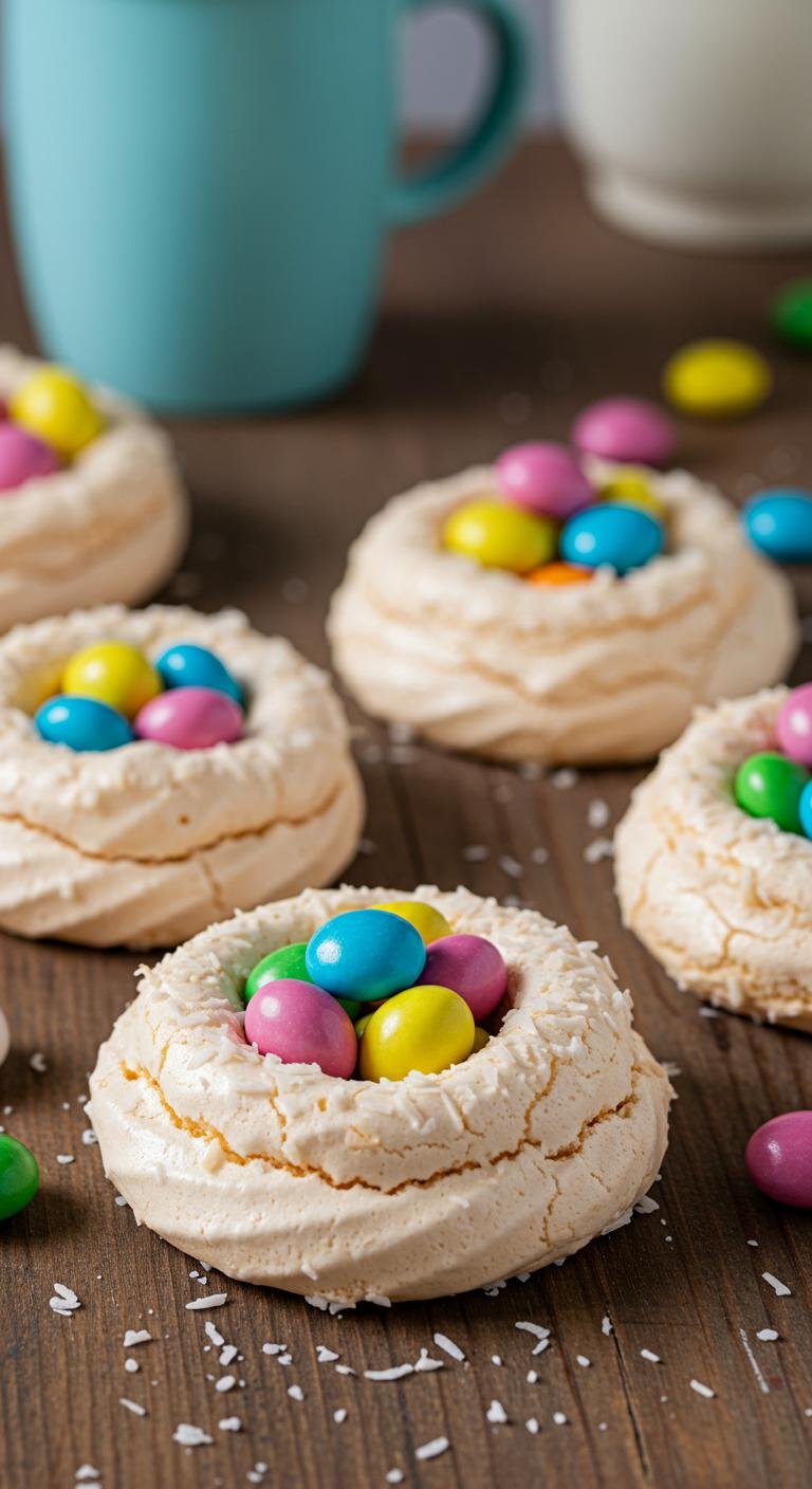- Shape into nests on the sheet and bake for 25 minutes. Cool and fill with chocolates or colorful candies.