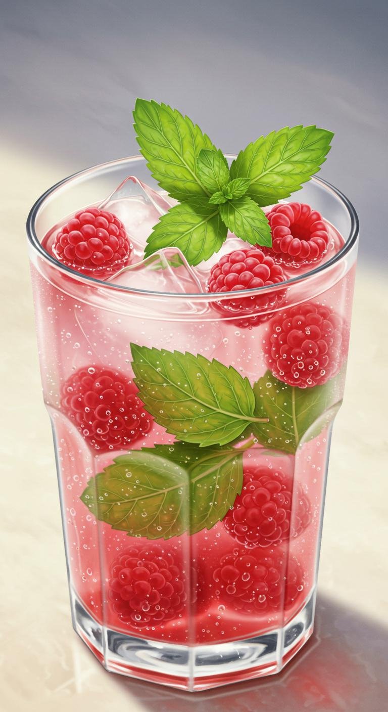 - Muddle raspberries and mint with lemon juice and sugar.