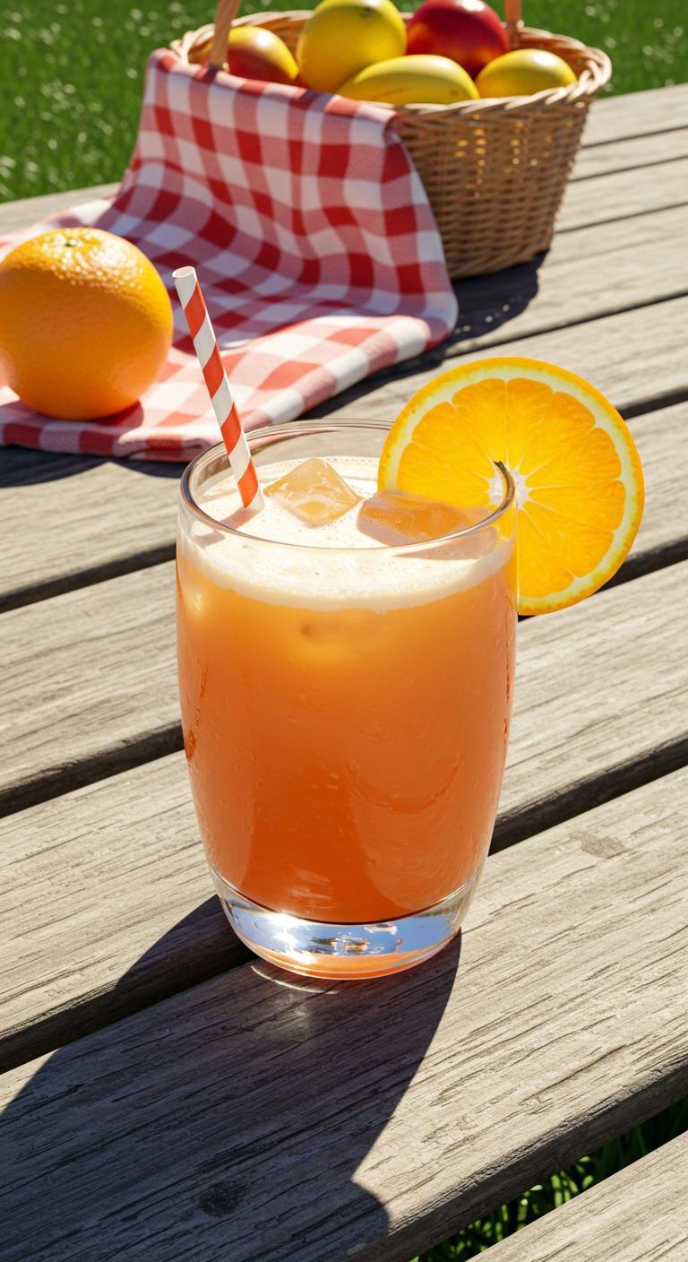 - Stir and garnish with an orange slice.
