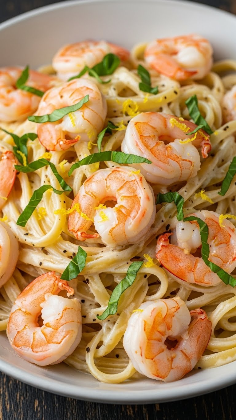 - In a skillet, heat olive oil and sauté shrimp until pink, then mix in the Alfredo sauce and cooked fettuccine.