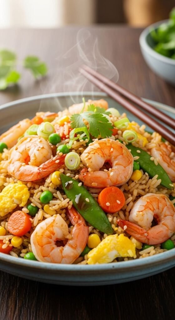 - Add soy sauce and cooked rice. Toss together until heated through.