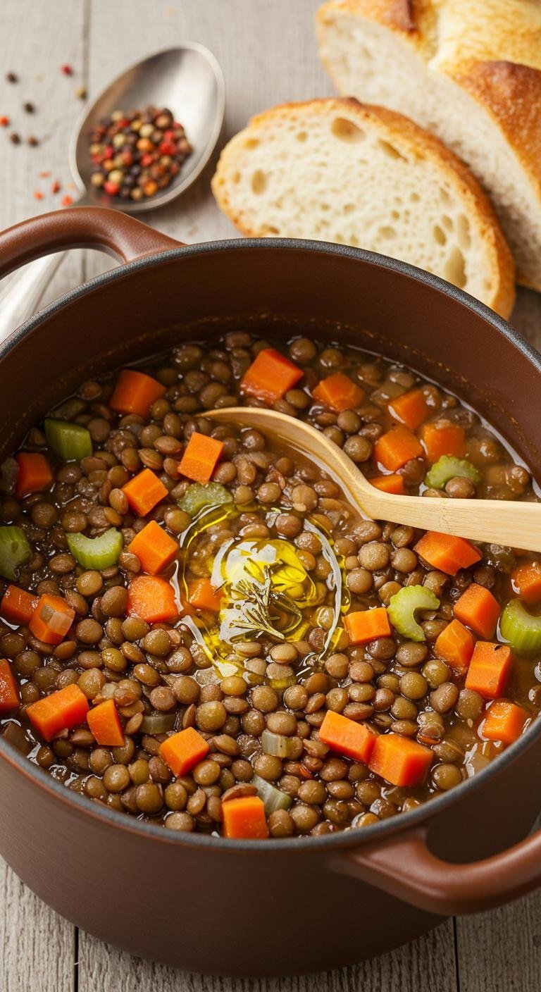 - Add lentils and broth; simmer for 30 minutes until lentils are tender.