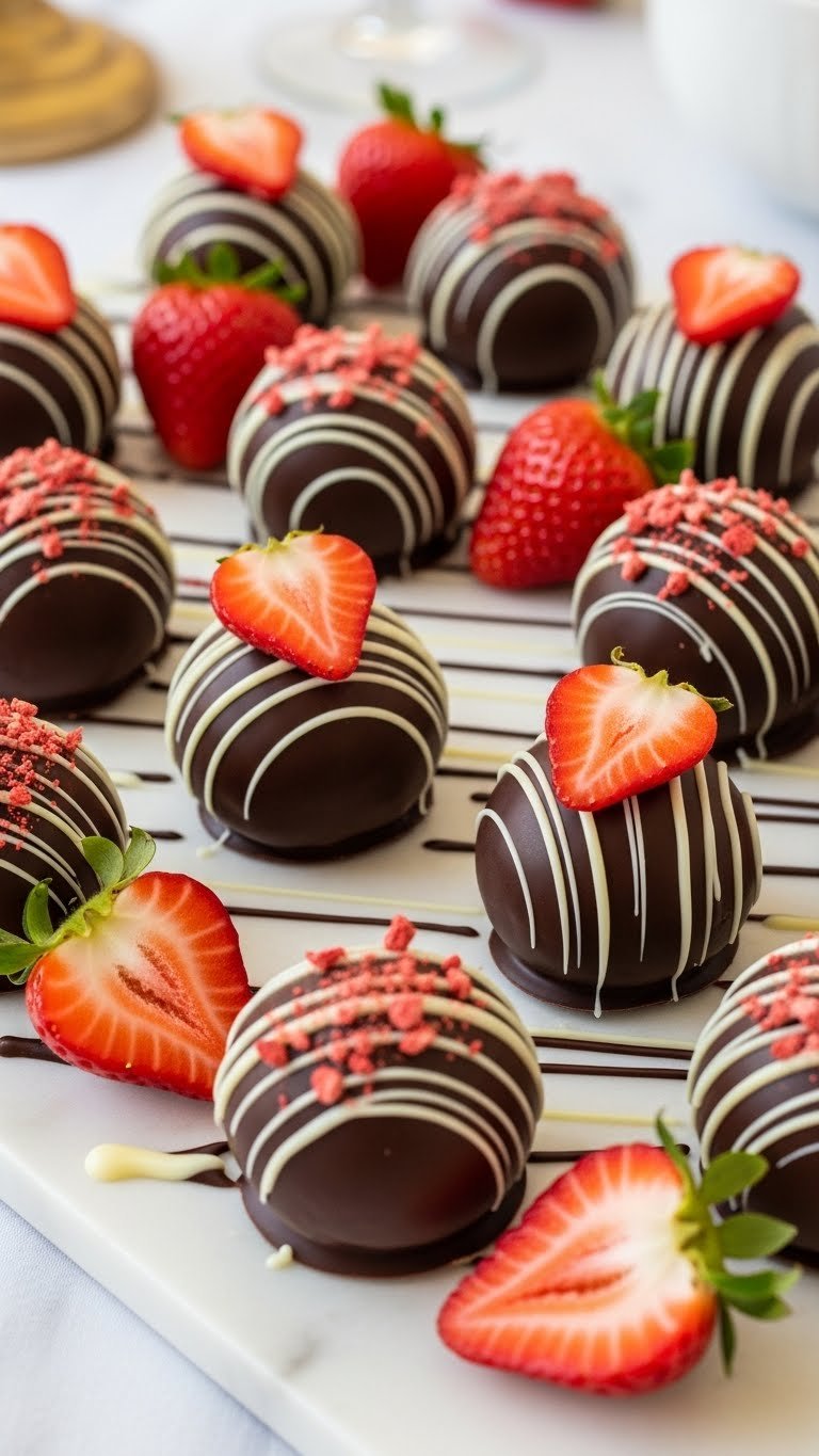 - Roll into balls, chill, then dip in melted dark chocolate.