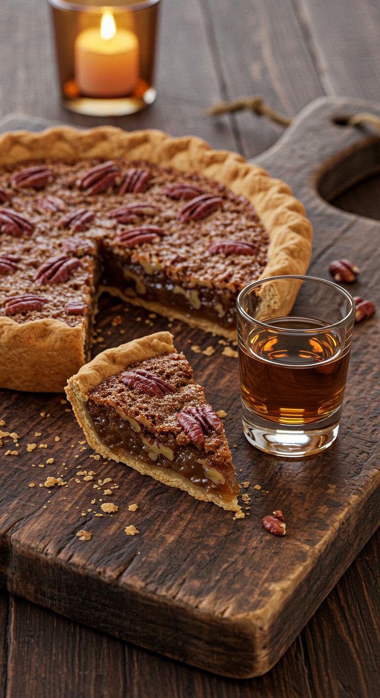- Whisk together corn syrup, brown sugar, melted butter, eggs, bourbon, and vanilla. Mix in pecans.