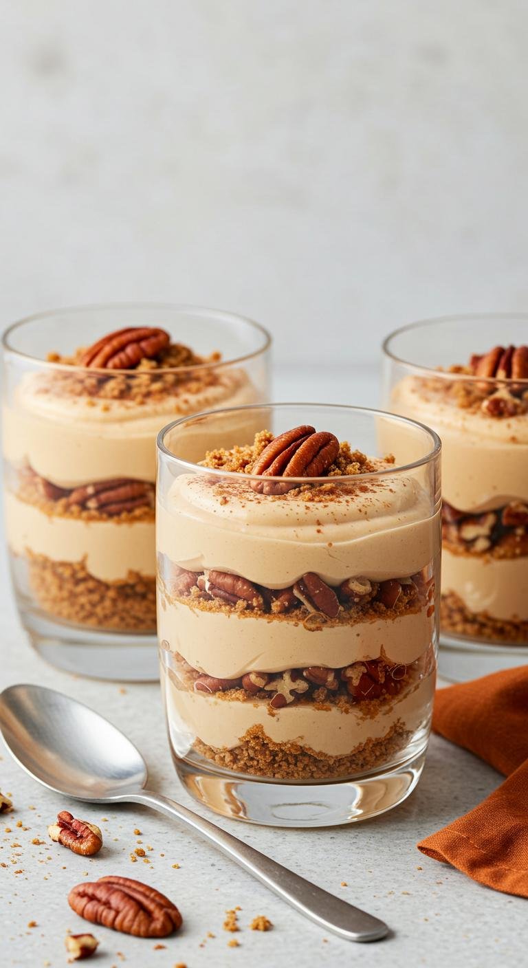 - Top with chopped pecans, repeating the layers until glasses are filled.