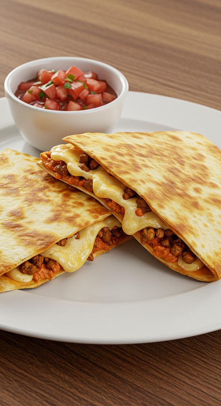 - Fill tortillas with meat and cheese, cook on a skillet until golden, then slice.