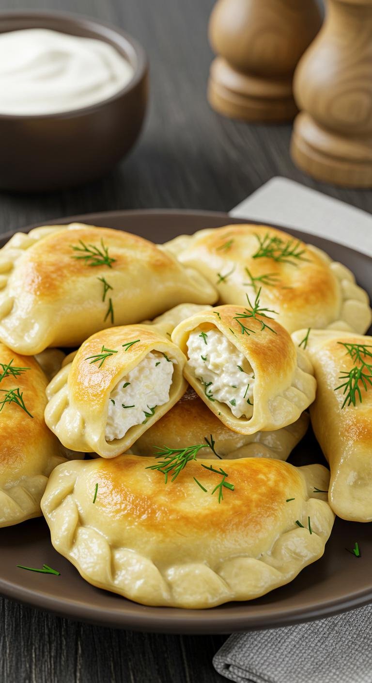 - Roll out the dough, cut into circles, fill with potato mixture, and seal.