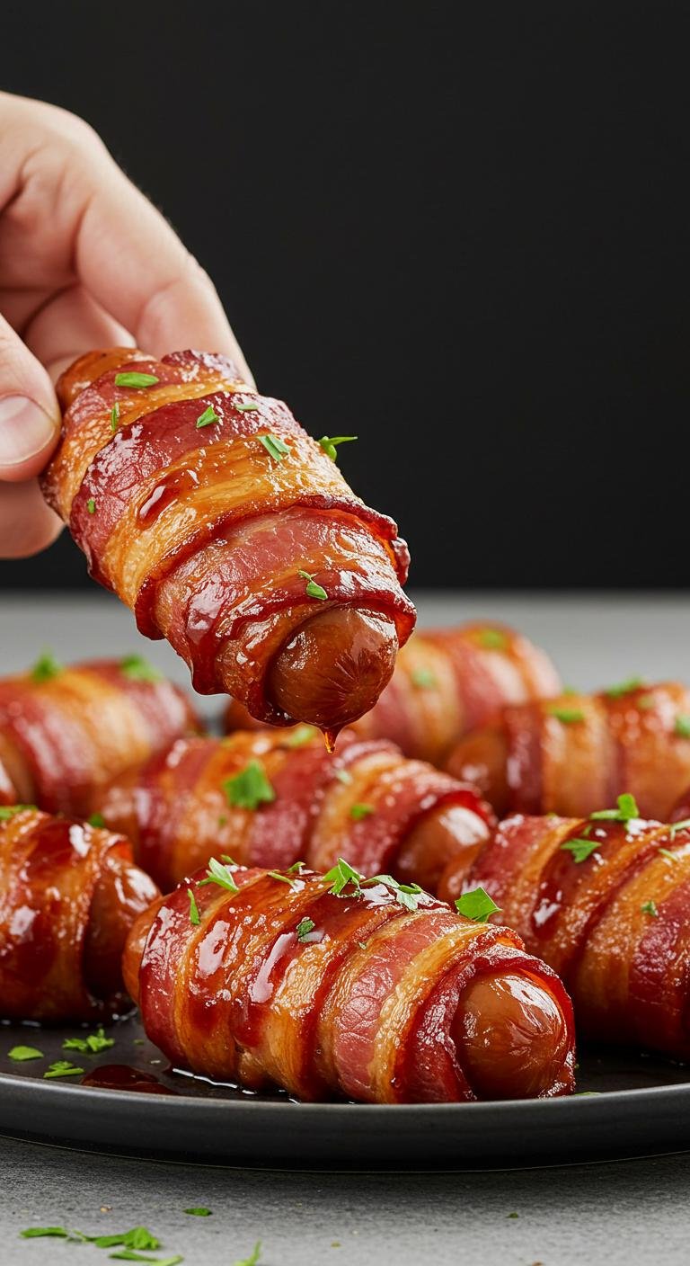 - Place on a sheet, brush lightly with BBQ sauce, and bake for 15-18 minutes until the bacon is crispy.