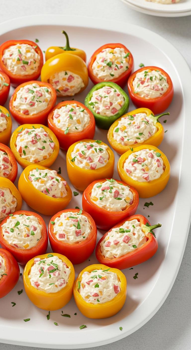 Swap mini peppers for celery sticks or cucumber boats for a different presentation!