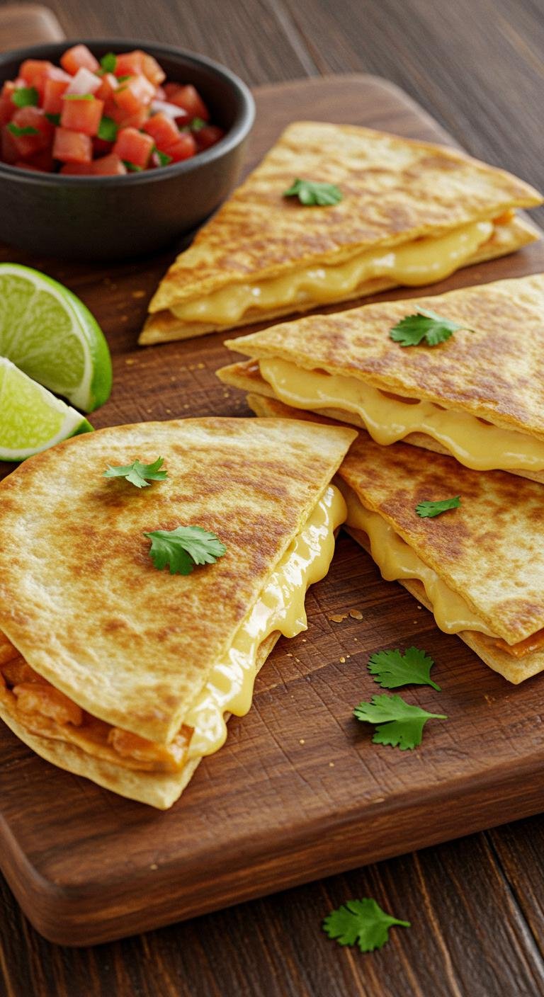 - Fold tortillas in half and heat in a skillet with olive oil until golden brown.