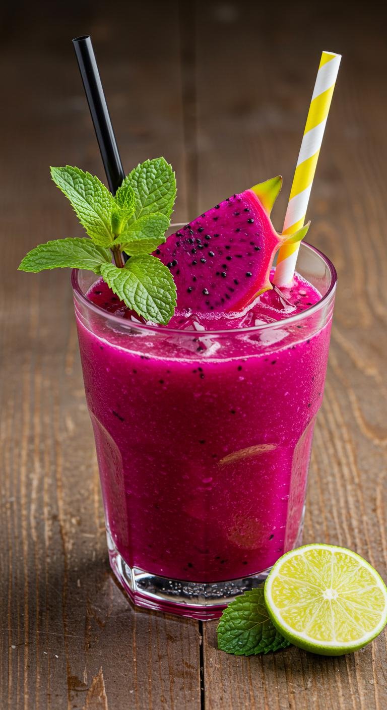 - Blend dragon fruit puree, coconut milk, and honey until smooth.