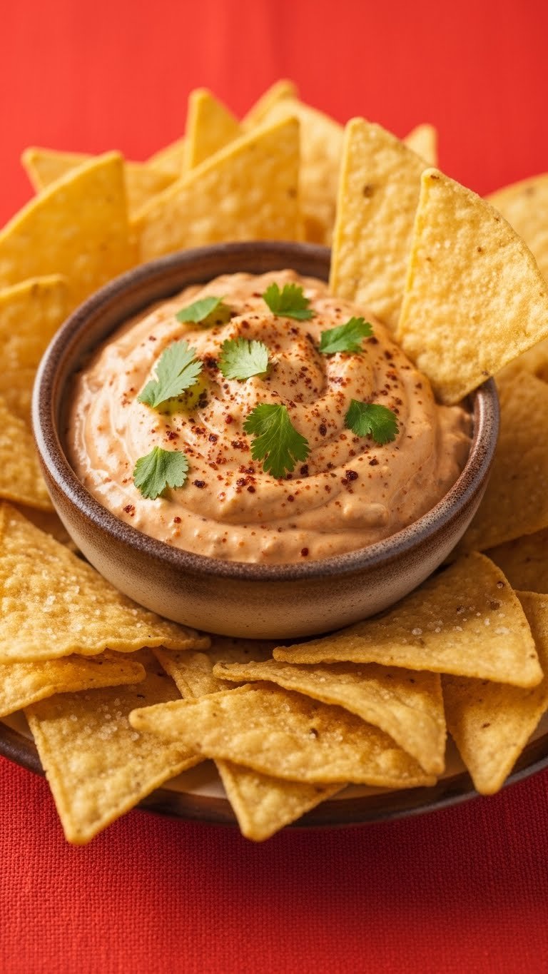 - Serve with tortilla chips or fresh veggies.
