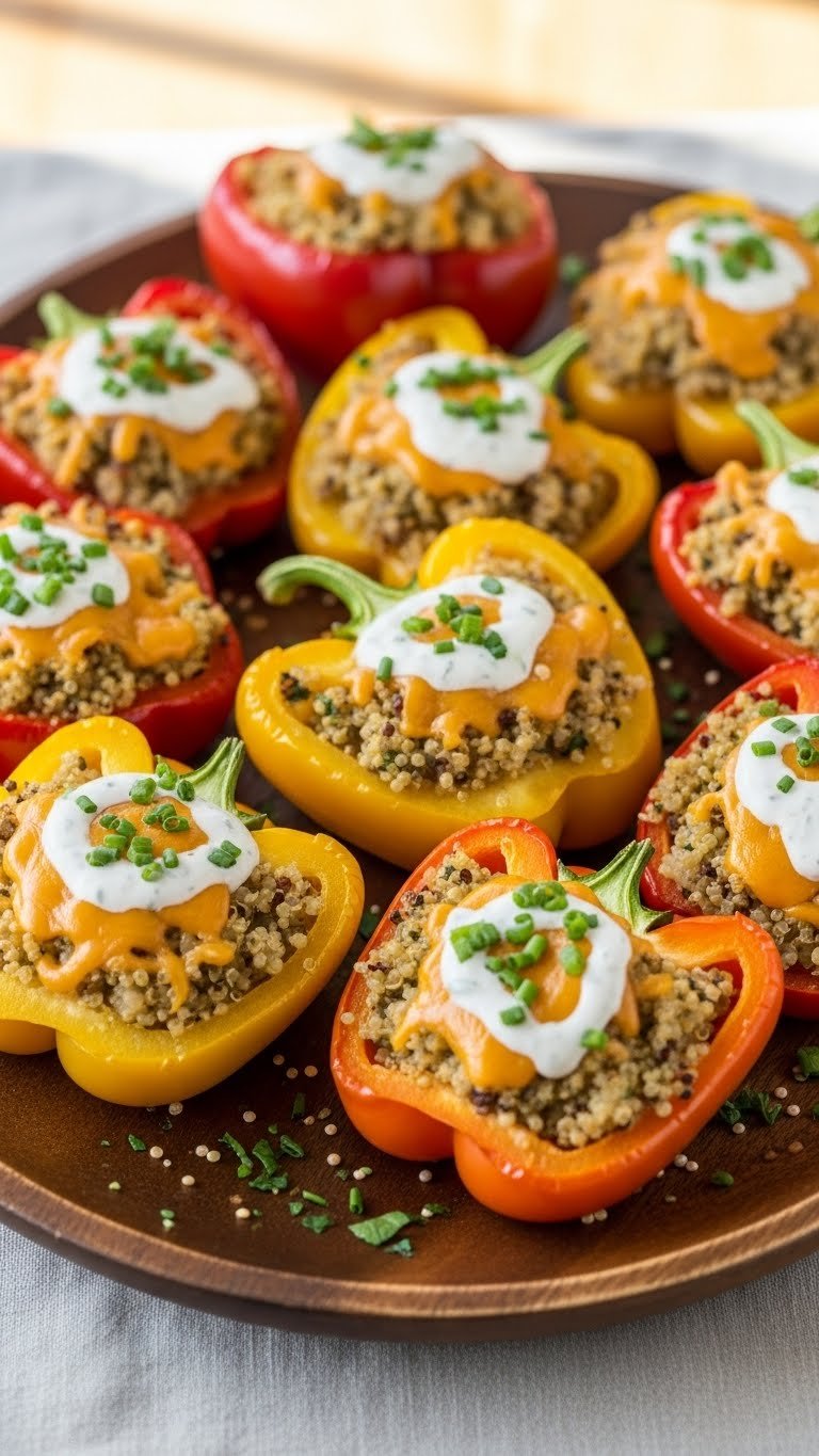- Mix quinoa with ranch dressing and spoon into halved peppers.