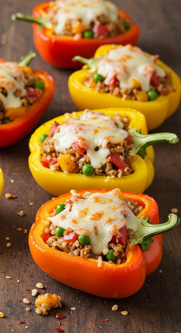 - Mix quinoa, beans, and corn; stuff into pepper halves.