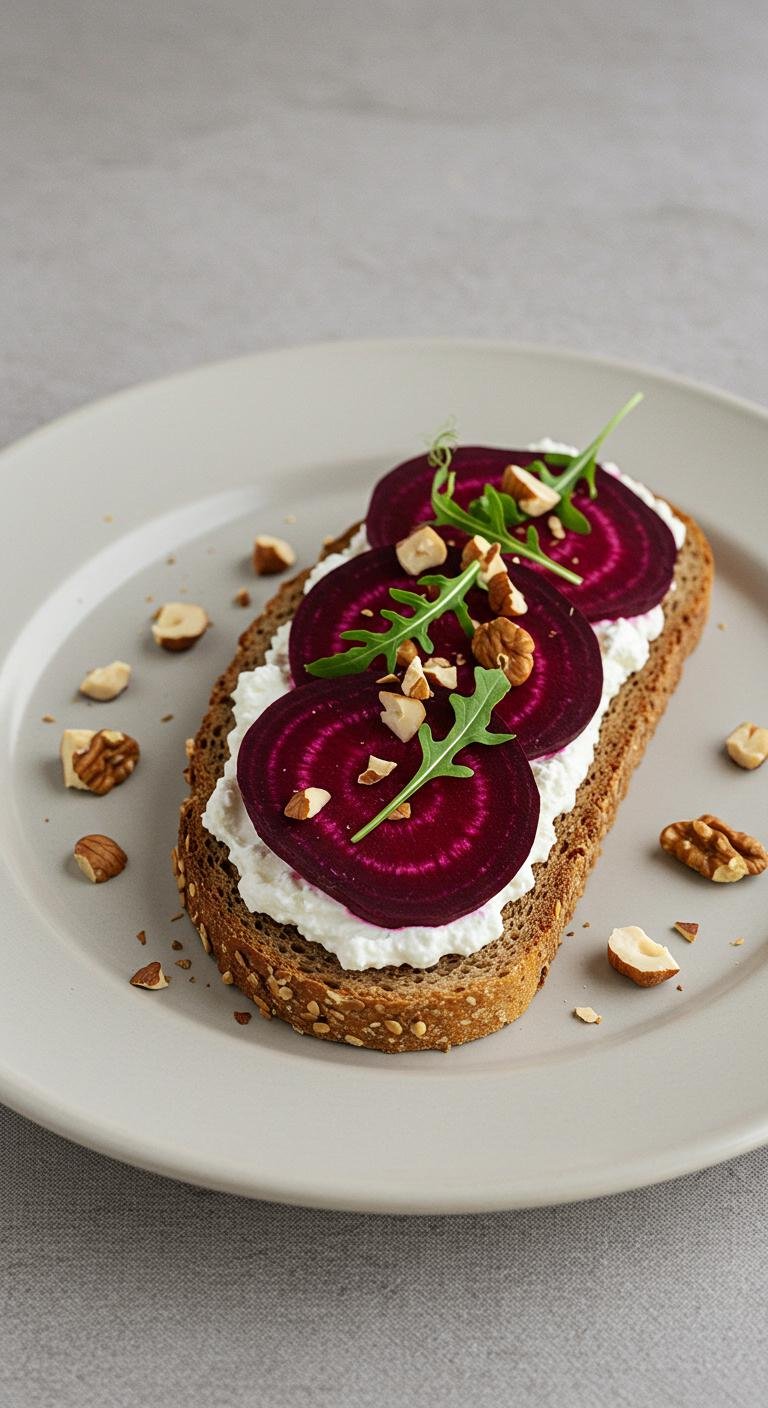 - Spread ricotta cheese evenly over each slice of rye bread.