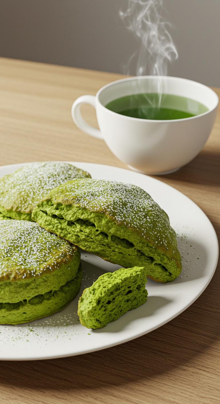 - Combine flour, sugar, baking powder, matcha, and salt, cut in butter until crumbly.
