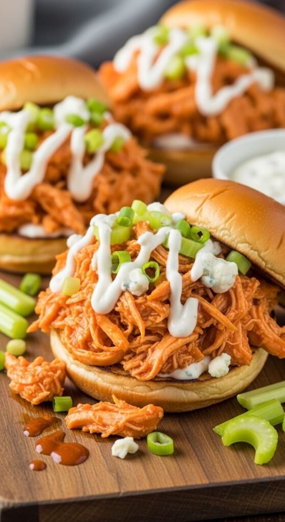 - In a bowl, combine shredded chicken, buffalo sauce, and ranch dressing.