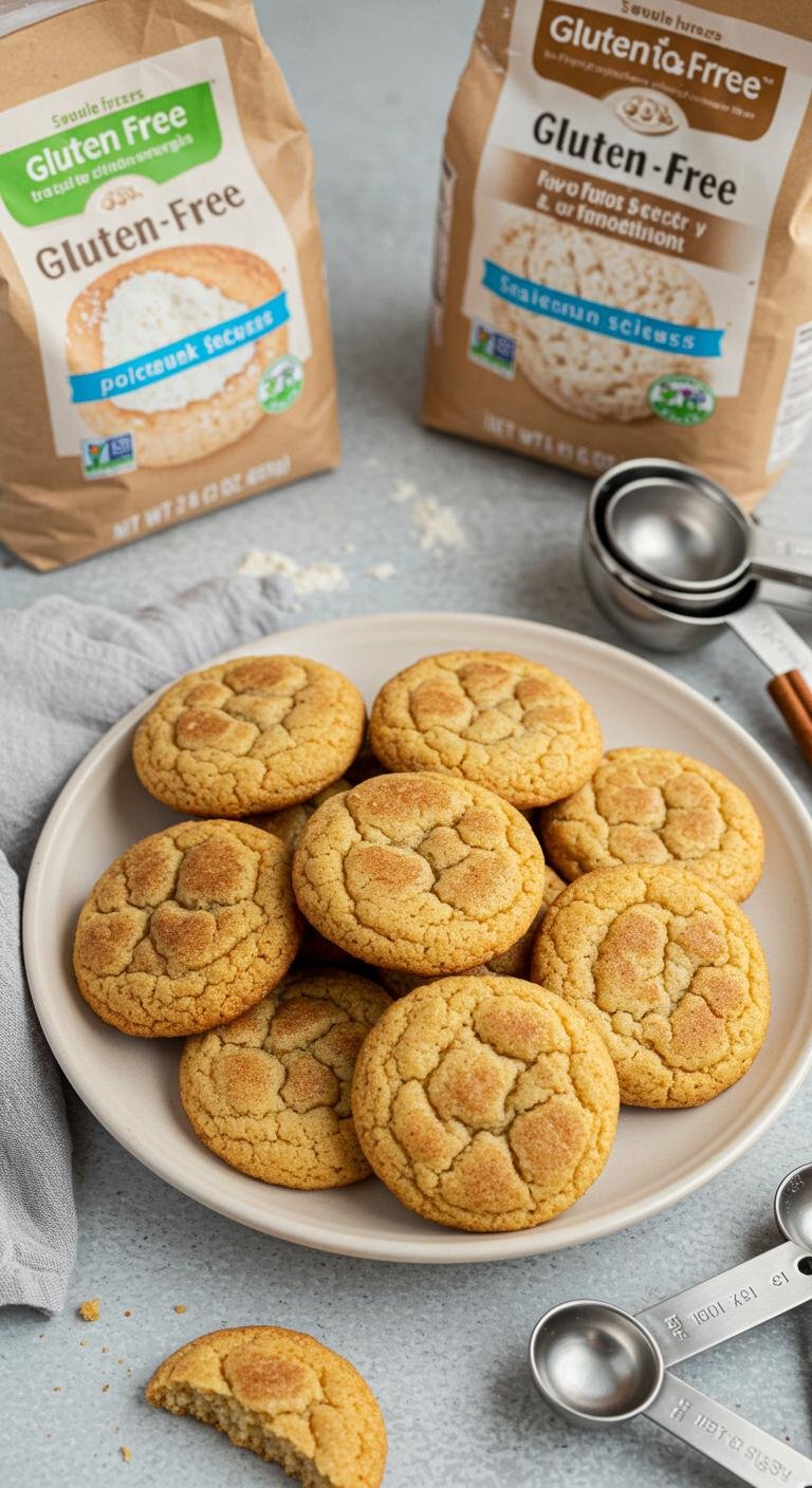 - Mix in the gluten-free flour, cream of tartar, baking soda, and salt. Roll out balls and coat with cinnamon sugar.
